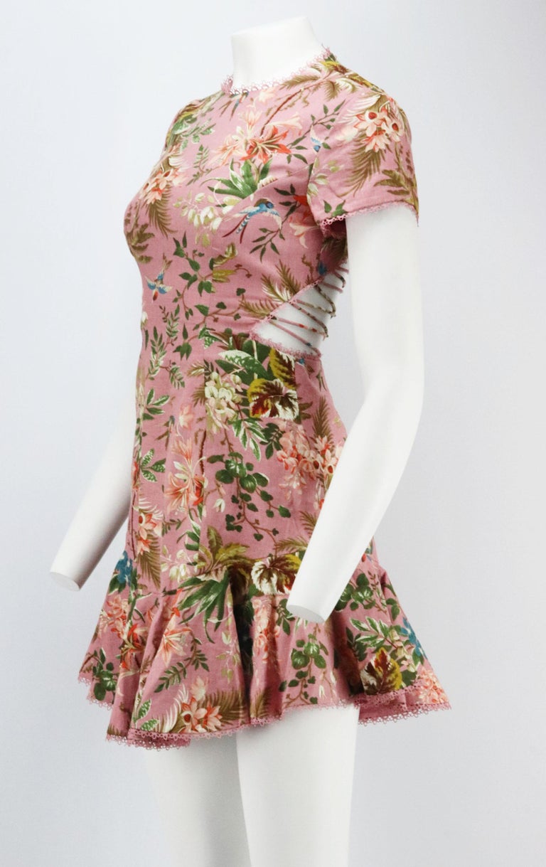 Zimmermann Tropicale Open Back Floral Printed Linen Blend Mini Dress Uk 8 For Sale At 1stdibs